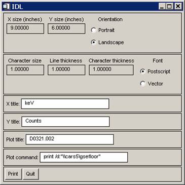 Note the plot command to print spectrum to printer "gse floor ps".
