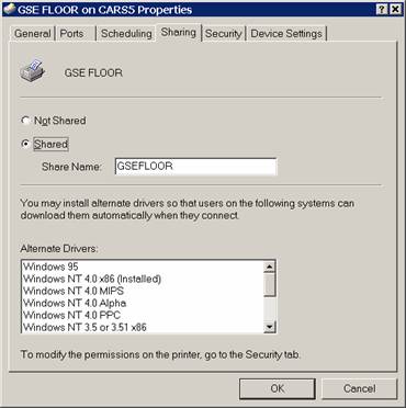 Note printer share name, “GSEFLOOR”