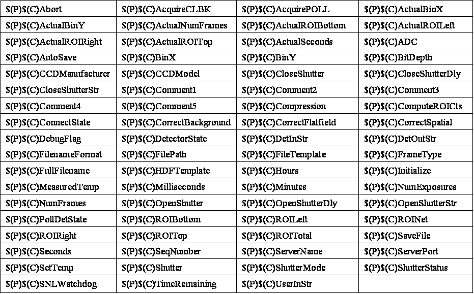 - Database of records (PVs), identical for all detectors