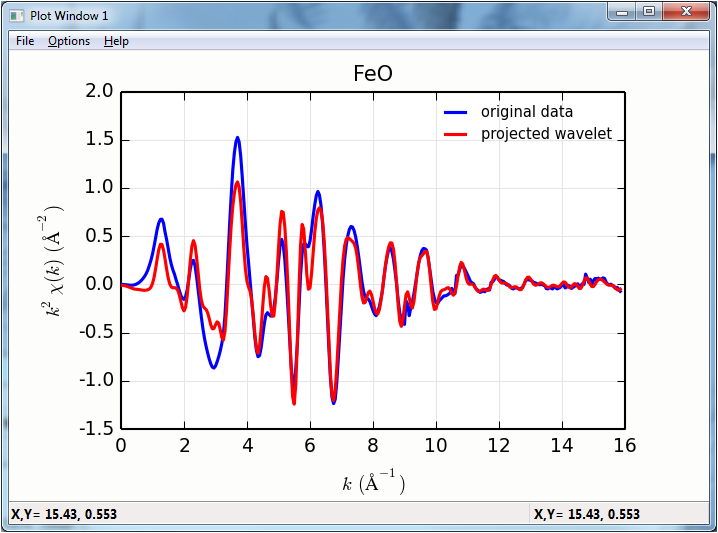 Applying the Cauchy wavelet transform to Fe K-edge data of FeO is fairly straightforward: